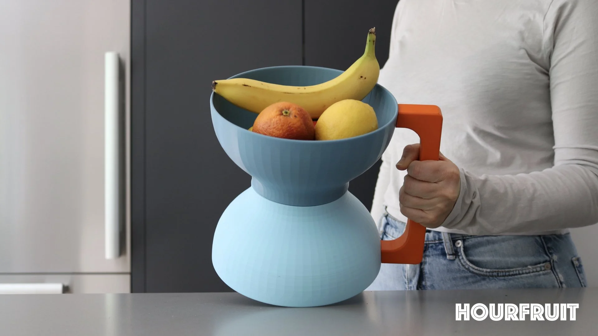Hourfruit is a timed fruit bowl that needs to be flipped every other day prompting a simple daily ritual: check each fruit and determine if it’s ready to eat. If it’s not, return it to the bowl for another rotation. When the handles align, repeat the ritual.