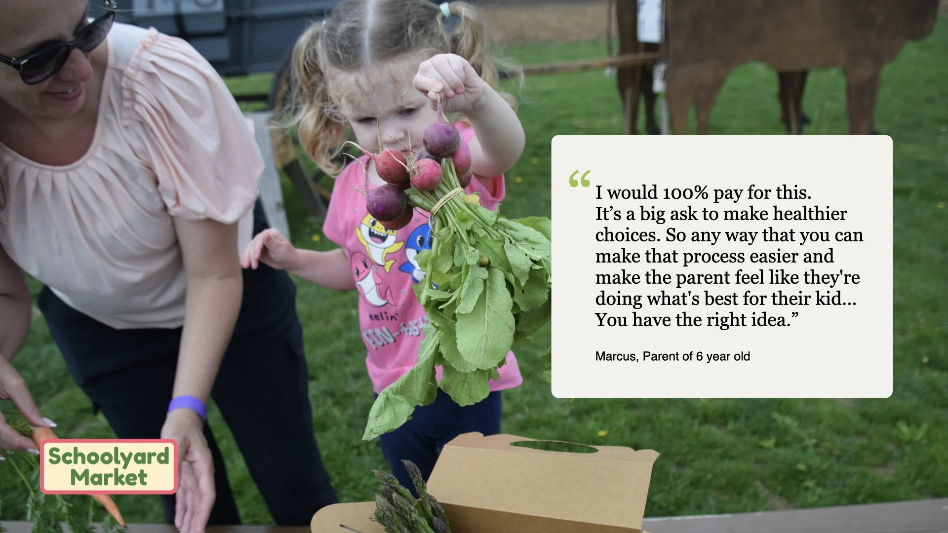 The box eliminates friction: No loose papers, buried emails, or planning. Even if they’ve never participated in a farm share, this one feels easy. As one parent highlighted: “I would 100% pay for this. It’s a big ask to make healthier choices. So any way that you can make that process easier and make the parent feel like they're doing what's best for their kid…”