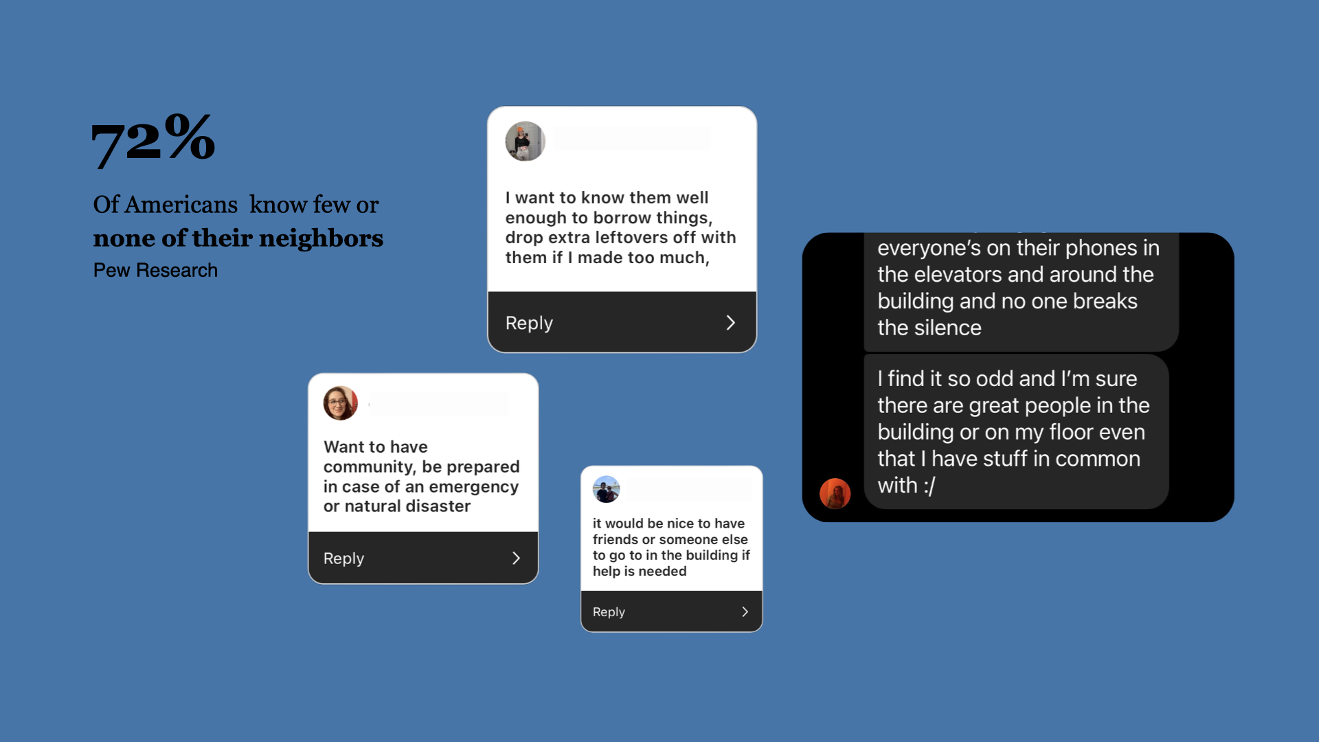 In early concept testing, Emma explored user willingness to lend and borrow within a smaller, more structured network, specifically within residential buildings. When framed as a building-supported service, participants reported feeling more open to sharing, especially if they could see what items were already available. This visibility removed the guesswork and reduced the social friction of asking for a favor.