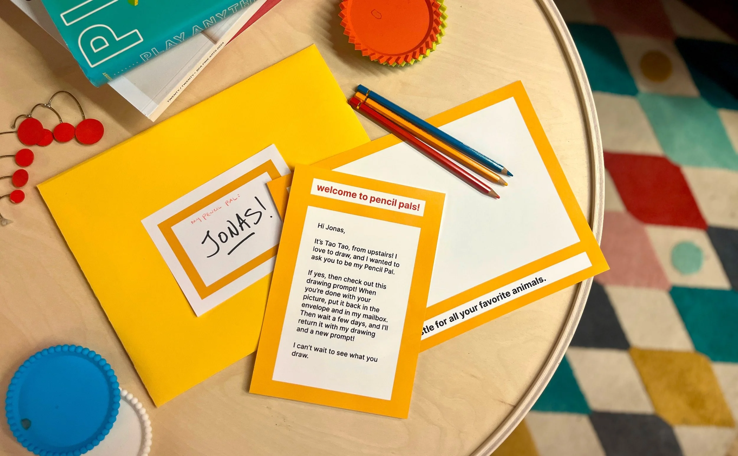 Tao Tao started by testing the concept with her six-year-old neighbor, Jonas. She left him a prompt, and he’d return his drawing with a new prompt for her. And they kept going… creating a loop of shared curiosity, anticipation, and imagination.