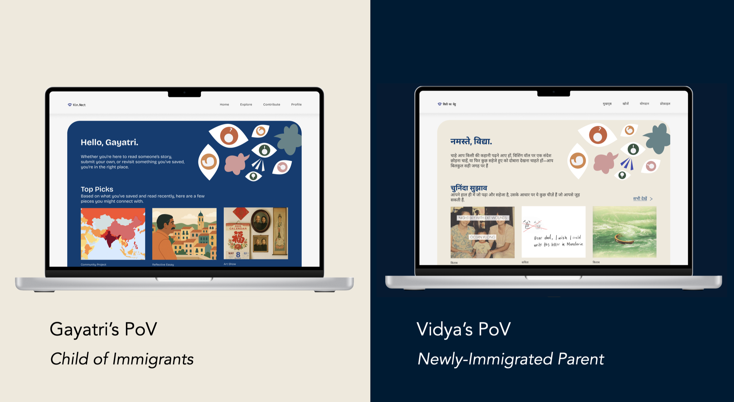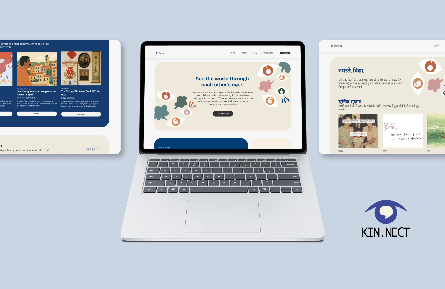 Kinnect is a digital archive designed to build emotional understanding across generations in Asian immigrant families. It collects letters, reflections, artwork, and memories from a wide range of community voices—organized by perspective. Users explore emotional experiences from the viewpoint of parents or children, creating space to see familiar struggles and hopes through new eyes.