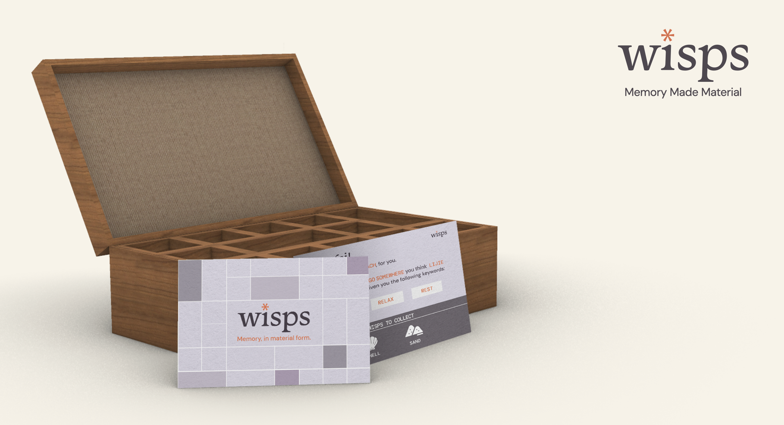 The system works as a rotational exchange: participants are paired with a different family member or loved one each month. They exchange tasks, send their collected Wisps, and receive someone else’s in return. The experience becomes cyclical, reflective, and deeply personal. By treating memory as an embodied ritual, Wisps offers a soft resistance to disappearance. It helps us hold on—not to the past, but to the people we hope to carry into our future.